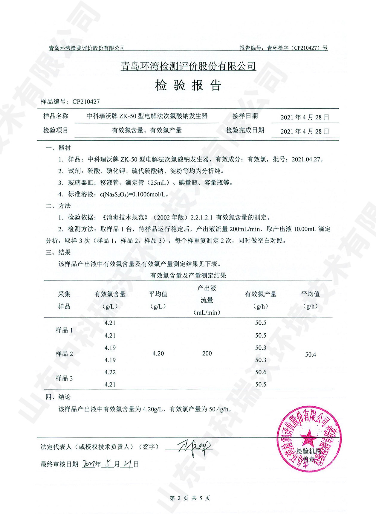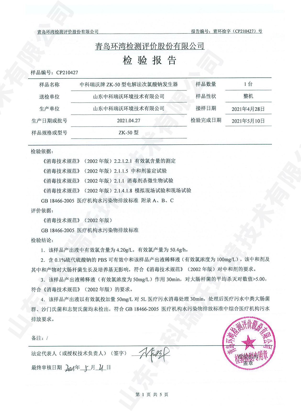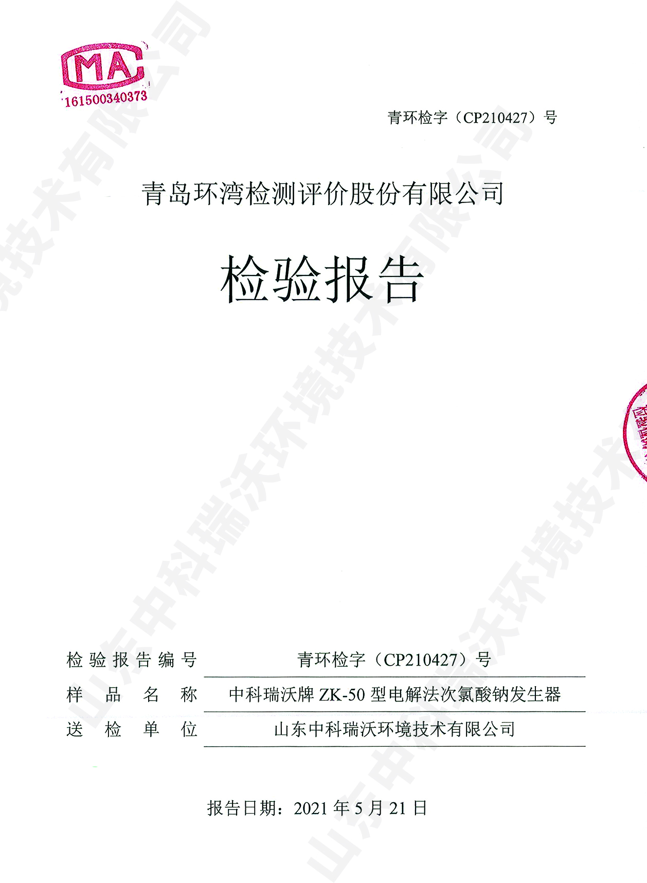 醫療污水處理設備檢測報告~二氧化氯消毒